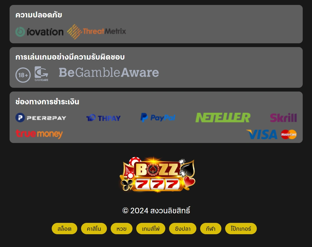 bozz777 คือเว็บไซต์พนันออนไลน์ครบวงจร ที่รวบรวมเกมพนันหลากหลายรูปแบบ ทั้ง สล็อต, คาสิโนสด, และ อีเวนท์กีฬาออนไลน์ ไว้ในแพลตฟอร์มเดียว มอบประสบการณ์เดิมพันที่ครบถ้วนและสะดวกสำหรับผู้เล่นทุกระดับหนึ่งในจุดเด่นของbozz777คือ ระบบฝาก-ถอนอัตโนมัติทันสมัยและรวดเร็ว ที่รองรับทั้งธนาคารชั้นนำและ True Wallet ทำให้การทำธุรกรรมปลอดภัย สะดวก และสบายใจได้ทุกครั้งยิ่งไปกว่านั้น ทางเว็บไซต์ยังส่งเสริมผู้เล่นทั้งเก่าและใหม่ด้วย โปรโมชั่นสุดคุ้ม เช่น โค้ดฟรี (เครดิตฟรี) ที่แจกจริง แจกทุกวันโดยไม่ต้องลุ้น เพิ่มโอกาสทำกำไรตั้งแต่เข้าระบบการเข้าถึงเกมก็ง่ายดาย ไม่ว่าจะเล่นผ่านมือถือหรือคอมพิวเตอร์ ทั้งระบบ Android และ iOS สนับสนุนการใช้งานได้ทุกแพลตฟอร์ม ทำให้คุณสัมผัสความบันเทิงได้ทุกที่ทุกเวลาด้านการบริการลูกค้าbozz777ก็โดดเด่น ทีมงานมืออาชีพพร้อมดูแลตลอด 24 ชั่วโมง ผ่านช่องทาง แชทสดบนเว็บไซต์, LINE, และ Telegram เพื่อให้คุณมั่นใจว่าจะได้รับความช่วยเหลือทุกครั้งที่ต้องการในเรื่องความปลอดภัยbozz777ให้ความสำคัญสูงสุด โดยใช้ ระบบเข้ารหัส SSL ระดับสูง มีการตรวจสอบระบบอย่างสม่ำเสมอ และได้รับการรับรองจากหน่วยงานที่เกี่ยวข้อง ทำให้ทุกการเดิมพันโปร่งใสและน่าเชื่อถือทั้งหมดนี้อยู่ในแพลตฟอร์มที่ออกแบบมาให้ ใช้งานง่าย และ เชื่อมต่อได้สะดวก ทุกวันตลอด 24 ชั่วโมง ไม่ว่าคุณจะเบิกเงิน ฝากเงิน หรือทดลองเล่นโหมดต่าง ๆ ก็ทำได้ทันทีโดยไม่มีสะดุด